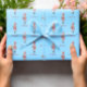 Este papel de embrulho de Natal apresenta uma ilustração encantadora de aquarela de um quebra-cabeça. Cria um padrão moderno e minimalista num fundo azul claro. Você pode adicionar um nome personalizado para um toque personalizado.