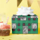 Um papel personalizado de empacotamento de fotos com pontos e corações vermelhos e verdes. Escolha 4 fotografias de família, amigos, animais de estimação ou qualquer coisa que a pessoa que é presente que você vai embrulhar irá apreciar. Faça o embrulho de um presente como o item que você está dando.