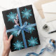 Papel de embrulho de flocos de neve, azul e preto, gelado.