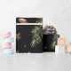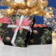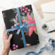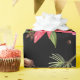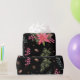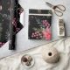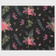 Este Ano Novo Feriado embrulhando papel com um padrão de bagas silvestres cor-de-rosa e flores rosadas cor-de-rosa combinadas com galhos de árvores de natal verdes e bolotas sobre fundo negro é perfeito para seus presentes. Aproveite.