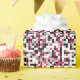 Este papel de embrulho apresenta um padrão geométrico colorido na moda Viva Magenta, preto, cinza e branco, com grade branca. Os quadrados são coloridos em um padrão aleatório e você pode editar as cores na ferramenta Design.