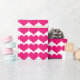 Papel de enrolamento de padrões em corações simples e doces, com um padrão repetitivo de pequenos corações rosa. Pode ser acrescentado texto a esta design para lhe dar um toque pessoal.