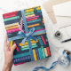 pilhas de livros que embrulham papel