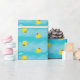 Papel de embrulho de presente azul com patos e "Feliz aniversário!". Personalizável.