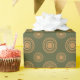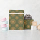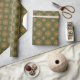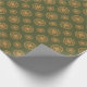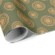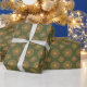 Dourados círculos e padrões de pontos em um fundo verde. As etiquetas de presentes correspondentes estão disponíveis.