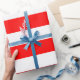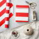 Presente Papel de enrolamento de tiras brancas e vermelhas