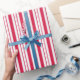As listras de hortelã-pimenta decoram este papel de embrulho festivo. O design é da arte original.