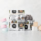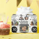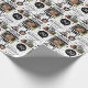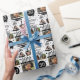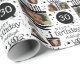 Um papel de empacotamento de aniversário de 30 anos de colagem de fotos divertido com um nome personalizado para envolver todos os presentes de aniversário. Gráficos negros de um bolo, presente, chapéu de festa e cupcake em preto e branco.