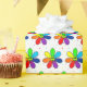 Um padrão formado de flores do arco-íris em um fundo de pontos colorido.
