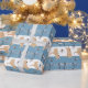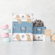 Papel de embrulho para o tema do canguru, que apresenta um doce canguru-mãe e bebê com padrões de flores e um esquema de cores azul e castanho-do-país. Perfeito para uso em chás de fraldas, aniversários ou em qualquer ocasião.