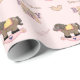 Papel de embrulho de chá de fraldas doce feito de rosa claro, com gráficos de um cavalo de balanço, coração de campo e texto gráfico colorido lendo Baby Girl. O texto personalizado marrom e poeirento, rosa, lê Chá de fraldas e pode ser personalizado para ler o que você quer.