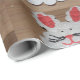 Uma fotografia de um coelho Páscoa feito de Copas Fechado que é brilhante e colorido. Com Whiskers, ouvidos e boca. Isso é no Wrapping paper em Sterling Kansas.