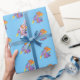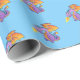 Papel de embrulho de presente mostrado em uma cor azul brilhante com um impressão de dragão giro. Personalize este papel ou comprar conforme mostrado.
