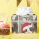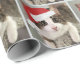 Gatinho bonito com o chapéu de Papai Noel embrulhando papel.