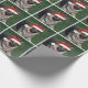 German shepherd bonito com o chapéu de Papai Noel embrulhando papel.
