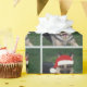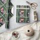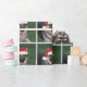 German shepherd bonito com o chapéu de Papai Noel embrulhando papel.