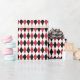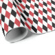 Um papel de embrulho projetado com um padrão de harlequin vermelho-escuro, preto e branco. Personalize a cor branca de fundo entre outras opções.
