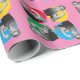 ROSIE moderno O Impressão RIVETER Wrapping Paper em rosa, mostrando a imagem icônica de Rosie em círculos vermelhos, amarelos, azuis e verdes em um impressão completo. Ideal para embrulhar os presentes do Dia do Trabalho, ou para as mulheres que empoderam. Este presente de Rosie Riveter também seria excelente de usar com as camisetas e presentes STEM correspondentes.
