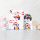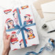Papel de embrulho de Natal moderno com pinguins bonitos em fundo branco. Personalize o nome ou as palavras.