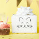 Gato encara um padrão em fundo branco. Papel de embrulho de cores preto e branco.