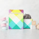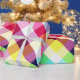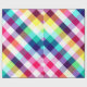 Um rolo de papel de embrulho que apresenta um padrão colorido de xadrez em cores arco-íris.