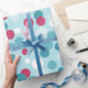 Aqua, e bolinhas vermelhas de morango decoram este papel festivo de embrulho. Este papel de embrulho de na moda é excelente para todas as idades. O design é da arte original.