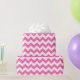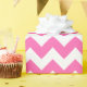 Um papel de embrulho projetado com um padrão de fevron rosa e branco em grande tamanho. Você pode mudar o rosa para uma cor diferente.