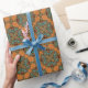 Padrão têxtil de emblema fractal verde e cor de laranja, papel de embrulho: papel de embalagem personalizável para todos os usos de artesanato e decoração, incluindo presentes de embrulho! Como minhas designs e Arte?