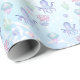 Papel de enrolamento de festas de aniversário com tema náutico, com ilustrações do fundo do mar, polvo fofo, água-viva adorável e uma cauda mágica de sereia.