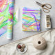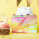 Como fitas ondulantes em neon grens e púrpura; blues e aquas elétricos; pinks quentes e vermelhos; laranjas fluorescentes e amarelos — todas transparentes, torcendo e se sobrepondo em um padrão que lembra feixes de lasers multicoloridos. Este design é uma excelente escolha para aniversários ou para uma apresentação de presente de anfitrião/anfitrião na véspera de Ano Novo.