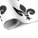 Papel de enrolamento mostrado em um impressão de Flor de Lis preto e branco. Personalize este item ou comprar como está.