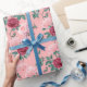 Presente Papel de enrolamento Floral, rosa e vermelho