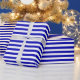 Um papel de embrulho desenhado com um padrão real de listras azuis e brancas em tamanho médio. Você pode mudar o azul real para uma cor diferente.