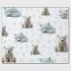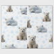 Ursos de inverno e raposa com fundo em flocos de neve.