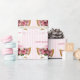 Papel de embrulho de menina doce feito em listras cor-de-rosa e brancas, com gráficos de um rosto de gatinho bonito, com lascas oculares de ouro e uma coroa rosa e flores cor-de-rosa. Personalize o nome para aniversários e muito mais.