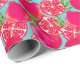 Este papel colorido de embalagem apresenta um padrão repetido de frutas de romã pintadas.
