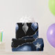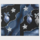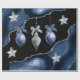 Um belo design usando um fundo preto e depois adicionando o agato azul com aparas prateadas, os belos ornamentos com um arco e sobre uma bonito corda e cercado por estrelas prateadas. Faz para alguns incríveis produtos Zazzle.