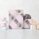 Um padrão repetitivo de um skate-figura bem vestido, colocado sobre um fundo cor-de-rosa macio, torna este papel de embalagem perfeito para esses presentes especiais após uma competição ou um espetáculo de excelente.
