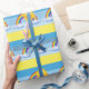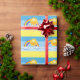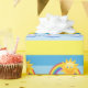Uma fotografia bonita de um sol sorridente com um arco-íris e nuvens no céu é apresentada neste papel de embrulho de presente. Design colorido num fundo amarelo claro faz disso uma maneira alegre de dar esse presente especial!