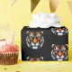 Este papel de embrulho de presente é mostrado num impressão de tigre feroz. Personalize este papel ou comprar como está. Imagem licenciada