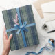 Presente Papel de enrolamento verde-masculino xadrez-azul