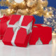 Presente Papel de enrolamento vermelho em prata e ornamento