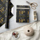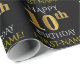 Este design de papel de embrulho apresenta uma mensagem como "FELIZ 10º ANIVERSÁRIO", com o "10º" a ter uma aparência falsa/imitação de ouro. Ele também apresenta um nome personalizado e um fundo colorido preto. Talvez possa ser utilizada quando se dá presentes para o décimo aniversário de alguém. [~Z0000130]