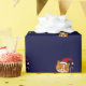 Gato alaranjado engraçado e bonito maravilhoso que veste um papel de envolvimento vermelho do Natal do chapéu de Papai Noel. Pode igualmente adicionar o texto feito sob encomenda e mudar a cor do fundo ao pedir. Aperfeiçoe para presentes personalizados durante os feriados.