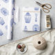 Este papel de envolvimento caracteriza uma aguarela azul e o teste padrão branco do frasco do gengibre que traz um toque da elegância a seus presentes!