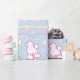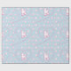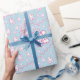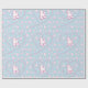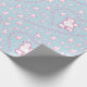Este teste padrão do papel de papel de embrulho caracteriza os cães de caniche bonitos do brinquedo que foram preparados e coração-deu forma a impressões da pata. Rosa e branco em uma luz - fundo azul. Excelente para miúdos e amantes do cão.