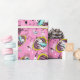 o coelho branco está atrasado por uma data importante neste papel de envolvimento. Os coelhos brancos em jaquetas do aqua pulam através dos quadros contra um fundo cor-de-rosa, completos caóticos, número-enchidos com as ampulhetas, os pulsos de disparo, e as formas do diamante. Papel de embrulho perfeito para uma Alice no aniversário temático ou no chá do país das maravilhas.