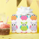 Corujas cor-de-rosa, roxas, e alaranjadas da caracterização cor-de-rosa bonito do papel de envolvimento da coruja do aniversário das bolinhas. Alguns elementos JDDigiDesign