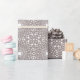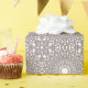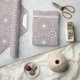 Um teste padrão intrincado do laço decora seu papel de envolvimento reminiscente dos doilies crocheted da avó.