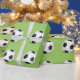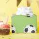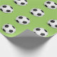 O papel de envolvimento mostrado com uma bola de futebol dos esportes imprime em um fundo verde. Personalize este artigo ou compre-o como é.